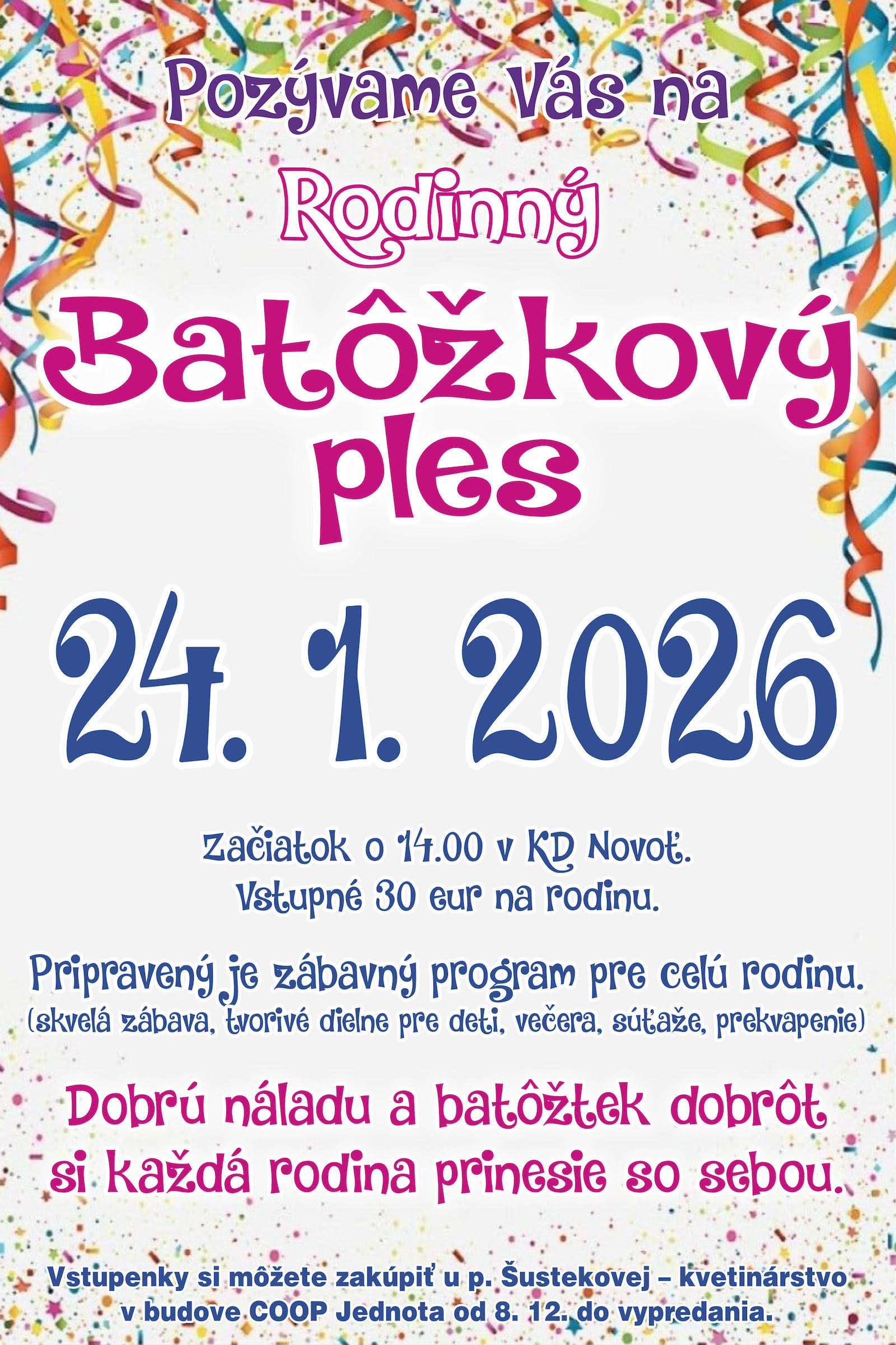 srdečne vás pozývame na náš tradičný Rodinný batôžkový ples!