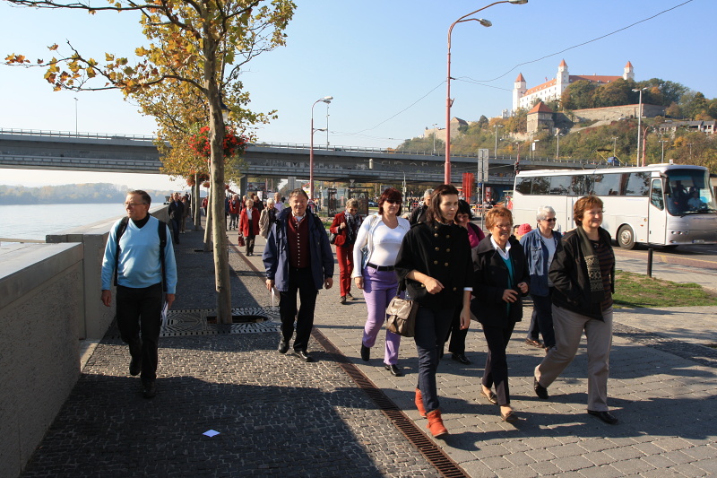 V piatok, po večeri v hostiteľských rodinách, sme sa stretli v útulnej kaviarničke „Le Patio" a pospomínali sme na časy „starej" farnosti Christi Himmelfahrt a aj na tých, ktorí zostali doma, v Kemptene. V sobotu sme spoločne absolvovali peší okruh historickým centrom Bratislavy, súčasťou ktorého bola aj návšteva kostola rádu františkánov, prehliadka kňazského seminára a krátky pobyt v katedrále Svätého Martina (vystihli sme chvíľku voľna medzi krstom a svadbou). Sobotu sme zavŕšili spoločným posedením. Naši nemeckí priatelia nám pripravili ochutnávku ich „zlatého moku" (bavorského piva, ktoré priviezli so sebou) a naše gazdinky zasa napiekli širokú paletu sladkého a slaného, ku ktorému sme ponúkali vínko z pezinskej vinohradníckej oblasti. K tomu všetkému striedavo zazneli príhovory „vedúcich delegácií" a duchovných otcov oboch farností. Rečovú bariéru prelamovali farníci, ktorí ovládajú nemčinu a tlmočili. Tých však nebolo treba pri speve ľudových piesní, ktoré vytvárali dobrú náladu a spievali sme si ich navzájom.