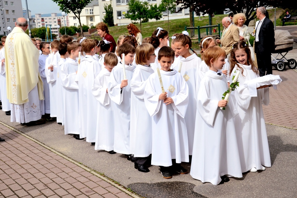 Dojímavý bol už samotný začiatok slávnostnej svätej omše, keď do krásne vyzdobeného kostola, na čom mali veľkú zásluhu hlavne rodičia prvoprijímajúcich detí, veľmi dôstojne vošiel sprievod detí odetých do bielych slávnostných rúch, na čele s krížom, miništrantmi a s pánom farárom. Pán farár v homílii s vrúcnosťou a láskou hovoril do sŕdc detí, rodičov i ostatných prítomných a apeloval na nich, aby si aj po skončení tejto slávnosti zachovali svoje čisté srdiečka, ktorých sa práve v tento deň dôverne dotkol Ježiš svojou prítomnosťou v Eucharistii a oni precítili jeho lásku. Vyjadril túžbu, aby tejto láske zostali verné po celý život. Pripomenul, aké dojemné boli prvé sväté spovede detí, kedy otvorili svoje srdiečka a duše dokorán.